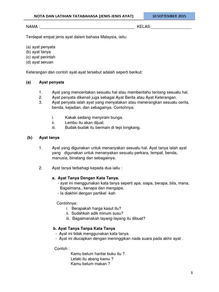 Nota Dan Latihan Tatabahasa Jenis Jenis Ayat Pdf
